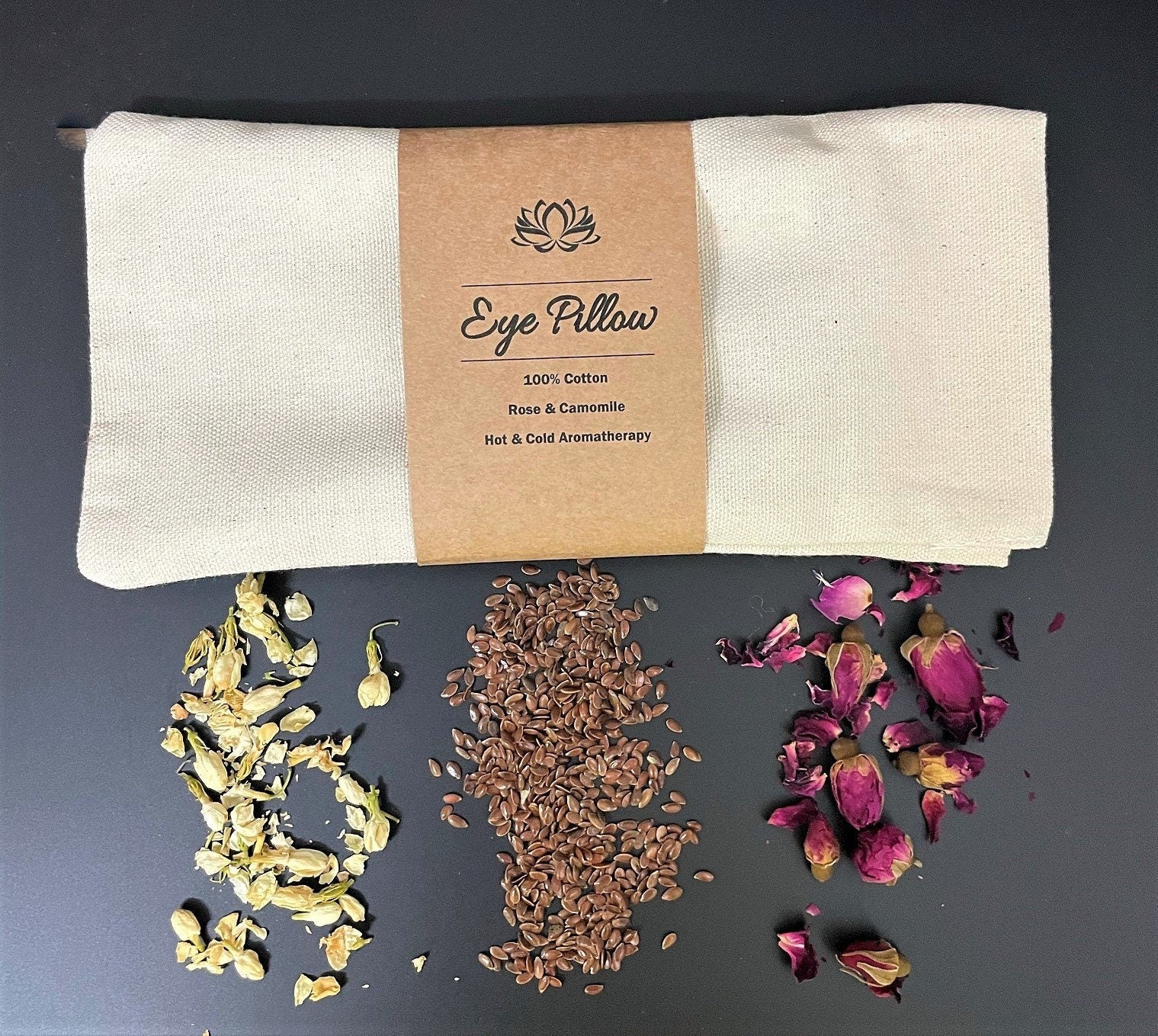 100% Natural Cotton Aromatherapy Eye Pillow filled with Organic Flax Seed and Natural Lavender Petals or Rose Petals & Chamomile Dried Buds