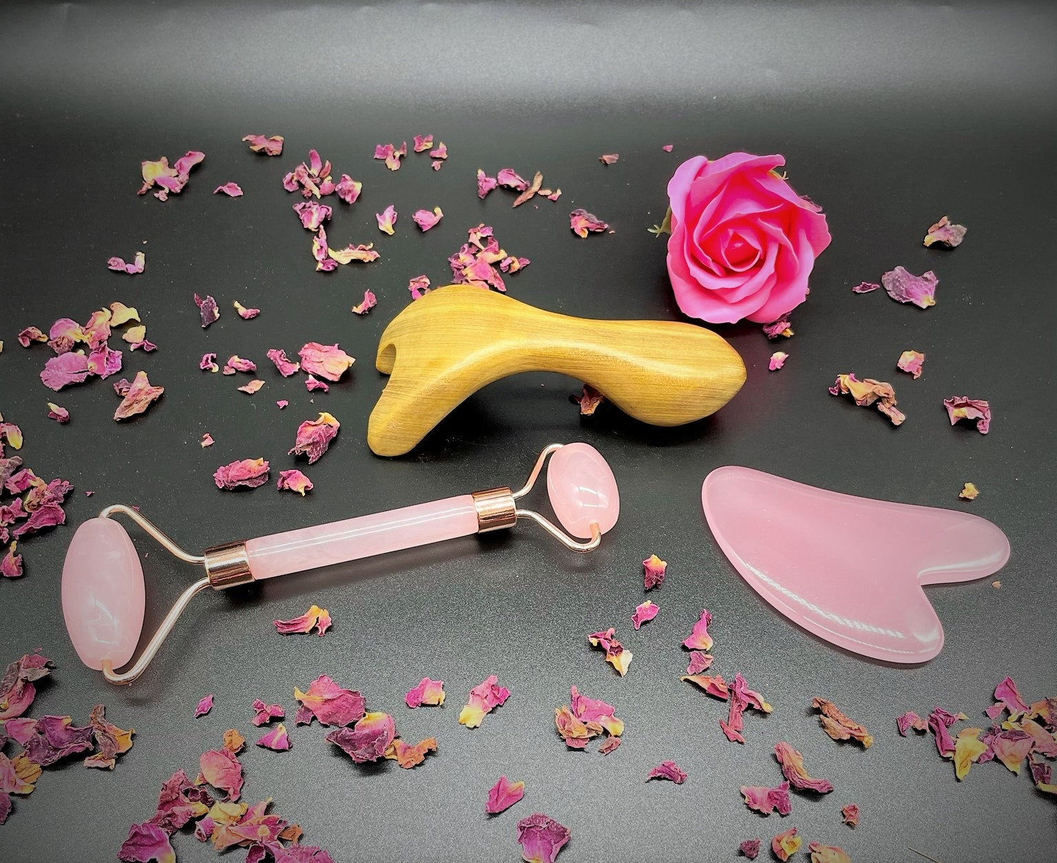 ROSE QUARTZ GUA SHA SCRAPER/MASSAGER - Gua Sha has been practiced in Traditional Chinese Medicine for thousands of years. Perfected throughout the centuries, this gua sha tool was built to have a firming, lifting effect on the skin.